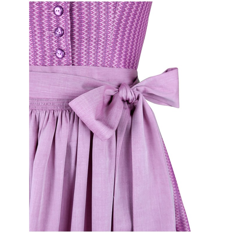 Die rosé melierte Baumwollschürze ergänzt das Gesamtbild harmonisch und unterstreicht den festlichen Charakter des Modells.