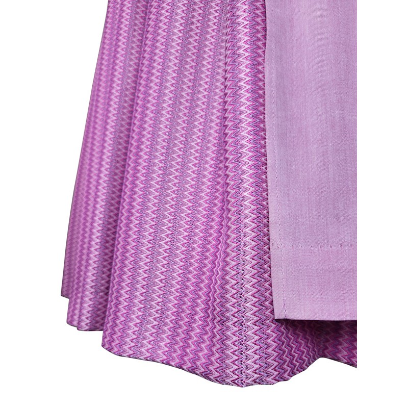 Das festliche Dirndl Pillersee von Hammerschmid besticht durch seinen zart pinken Webstoff mit feinem Zackenmuster und eine elegante Ausstrahlung. Der Ausschnitt verläuft bis auf Brustmitte und setzt das Dekolleté stilvoll in Szene. Geschlossen wird das Dirndl vorne mit farblich abgestimmten Knöpfen, während ein heller, fein gestreifter Baumwollstoff im Inneren für angenehmen Tragekomfort sorgt.