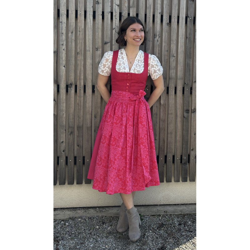 Mit seinem klassischen Schnitt und der ausdrucksstarken Farbgebung sorgt das Dirndl für einen stilvollen und präsenten Auftritt.